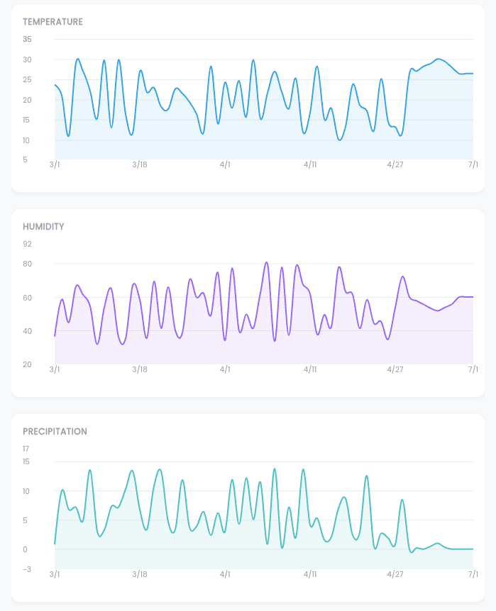 Monitor live weather data (temperature, humidity, rainfall, wind speed) Receive automated alerts for critical environmental changes